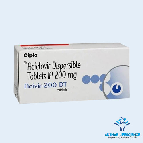 Description: Acivir 200 DT Tablet is an antiviral medication primarily used for the treatment of infections caused by the herpes simplex virus (HSV) and varicella-zoster virus (VZV). Acyclovir, the active ingredient, works by inhibiting viral DNA synthesis, thereby stopping the growth and spread of the virus. It is effective in managing conditions such as genital herpes, cold sores, shingles, and chickenpox.