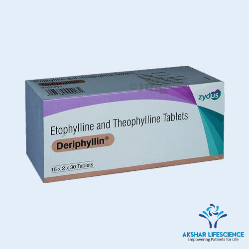 Deriphyllin is a combination medication used primarily for the treatment and management of respiratory conditions such as asthma and chronic obstructive pulmonary disease (COPD). The active ingredients, Etofylline and Theophylline, work together to relax the muscles in the airways, improving airflow and alleviating symptoms such as wheezing, shortness of breath, and chest tightness.