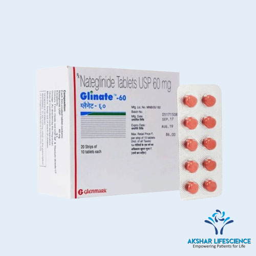 Description: Glinate-60 contains Linagliptin (60 mg), used to manage type 2 diabetes by improving insulin sensitivity.