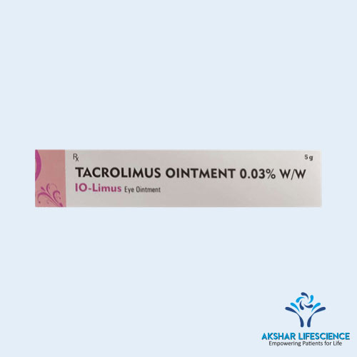 IO-Limus Eye Ointment is an immunosuppressive medication used primarily to treat allergic eye diseases. It works by suppressing the immune response in the eye, thereby reducing inflammation and alleviating symptoms such as redness, swelling, itching, and watering of the eyes. Tacrolimus inhibits the production of inflammatory chemicals by specific immune cells (T lymphocytes), providing relief from allergic reactions.