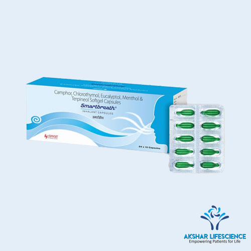 Smartbreath is an inhalant capsule designed to relieve nasal congestion and respiratory discomfort. The formulation combines several active ingredients known for their decongestant and soothing properties. It is particularly effective in treating symptoms associated with colds, sinusitis, and other respiratory infections.